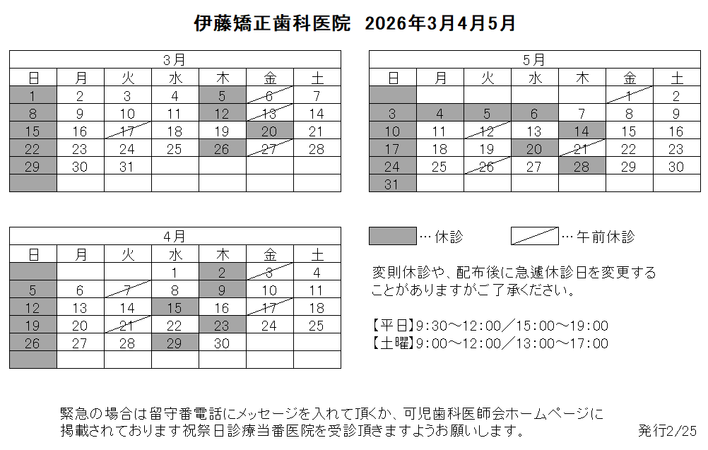 【診療カレンダー】25年12月~26年2月の診療日と休診日について