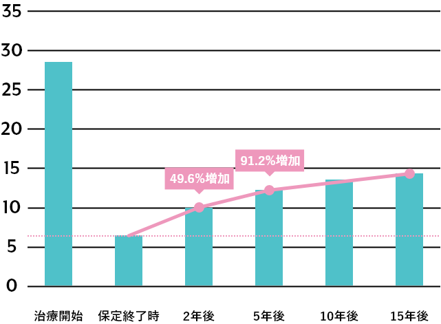 このように当院の矯正治療の術後経過は、従来の矯正に比べ安定していることが分かります。